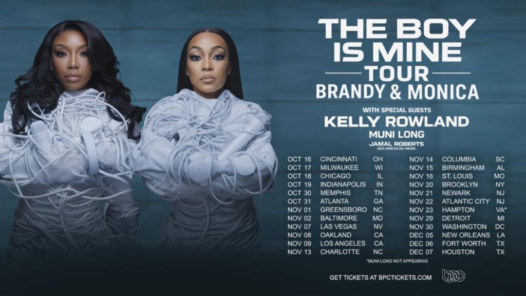 Dynamic GRAMMY Award-winning artists Brandy and Monica are joining forces for their first-ever co-headlining tour this fall. The 24-city arena tour kicks off October 16 and runs through December 7, traveling across the country. Special guests include GRAMMY-winning superstar Kelly Rowland, chart-topping singer-songwriter and GRAMMY winner Muni Long, and rising star Jamal Roberts, fresh off his 2025 American Idol Season 23 win.