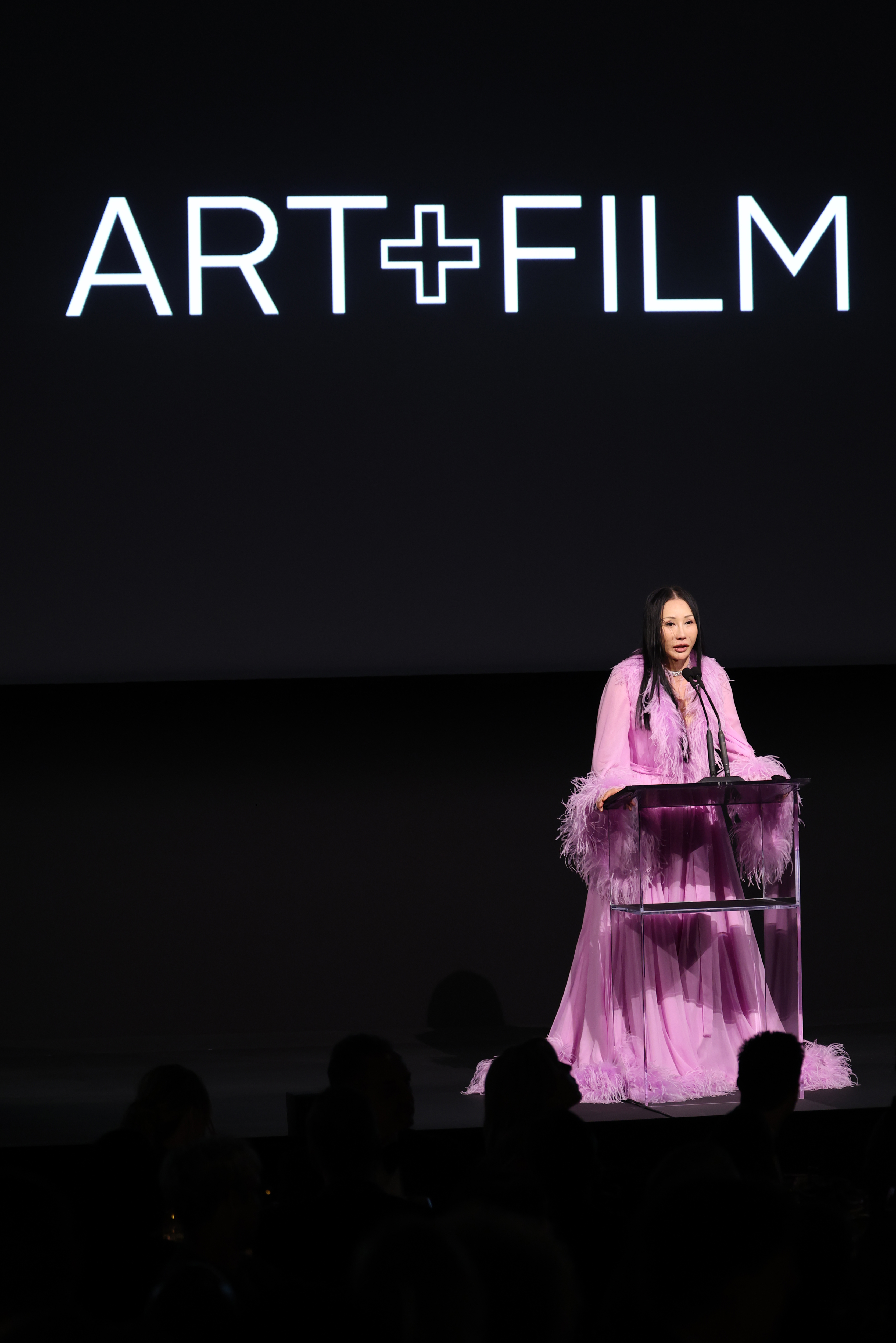 LOS ANGELES, CALIFORNIA – NOVEMBER 01: Eva Chow, 2025 Art+Film Gala Co-Chair, wearing Gucci, speaks onstage during the 2025 LACMA Art+Film Gala, Presented By Gucci at Los Angeles County Museum of Art on November 01, 2025 in Los Angeles, California. (Photo by Amy Sussman/Getty Images for LACMA)